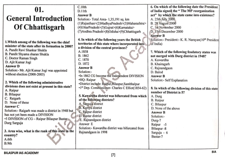 2025 CGPSC Objective Question Booklet English Medium Book By Bilaspur IAS Academy